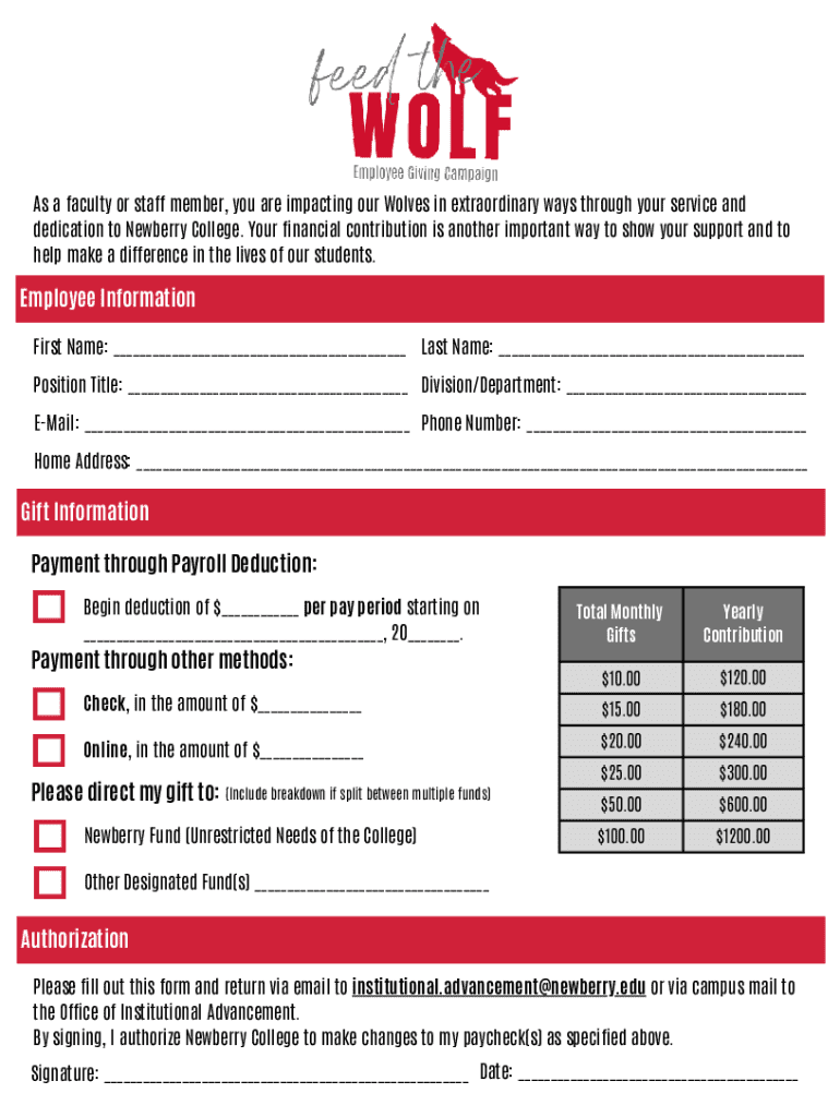 As a faculty or staff member, you are impacting our Wolves in extraordinary ways through your service and dedication to Newberry College. Your financial contribution is another important way to show