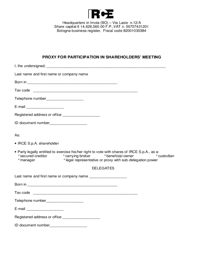 Headquarters in IMOCA (BO) Via Basie n.12/A Share capital 14,626,560.00 F.P., VAT n. 00707431201 Bologna business register, Fiscal code 82001030384PROXY FOR PARTICIPATION IN SHAREHOLDERS MEETING I,