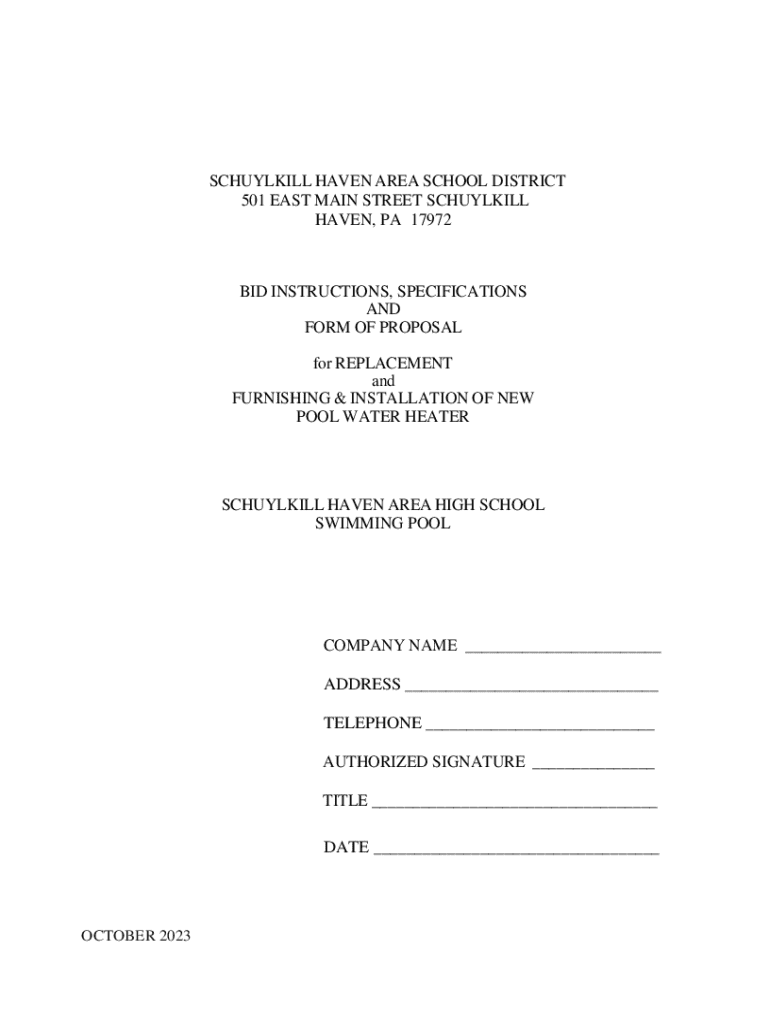HAVEN, PA 17972BID INSTRUCTIONS, SPECIFICATIONS