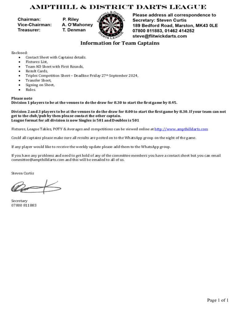 Get the free Information for Team Captains - Ampthill & District Darts League