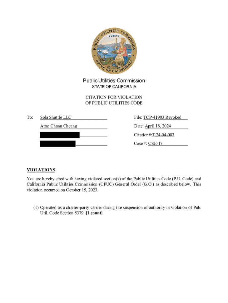 Individuals or businesses who have been issued a citation by the public utilities commission.