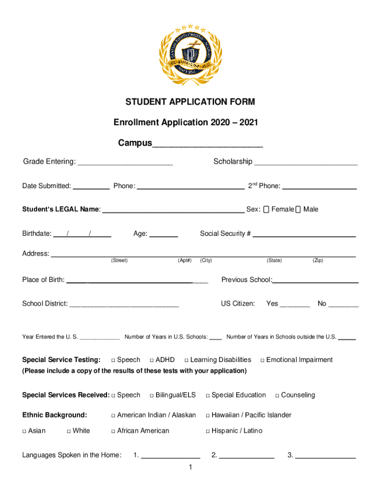 2nd Phone:Phone:Students LEGAL Name:Birthdate:/Sex:/Age:FemaleMaleSocial Security