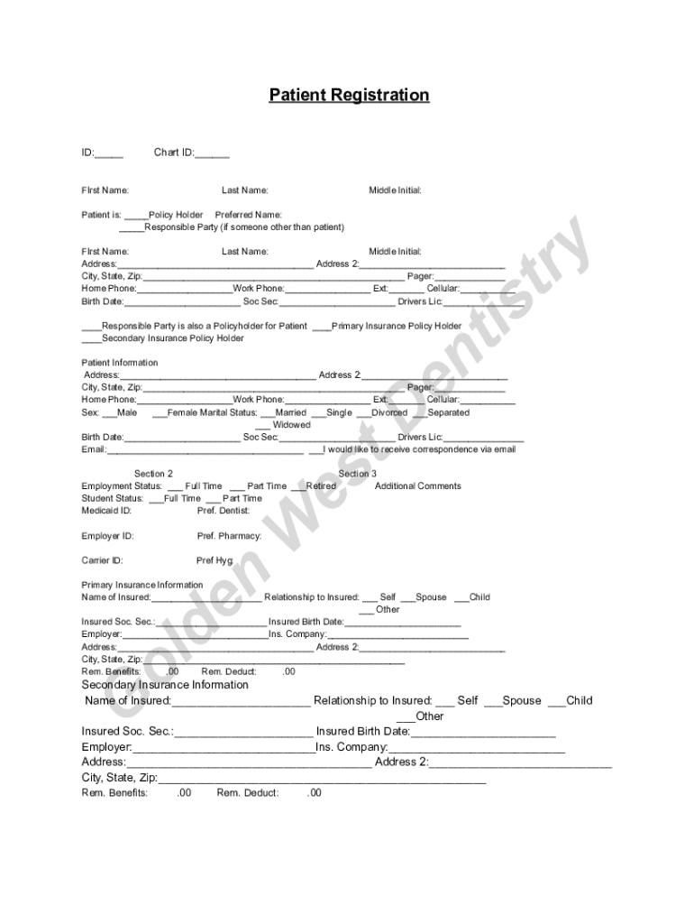 ID:___Chart ID:___First Name:Last Name:Middle Initial:try Patient is: ___policyholder Preferred Name: