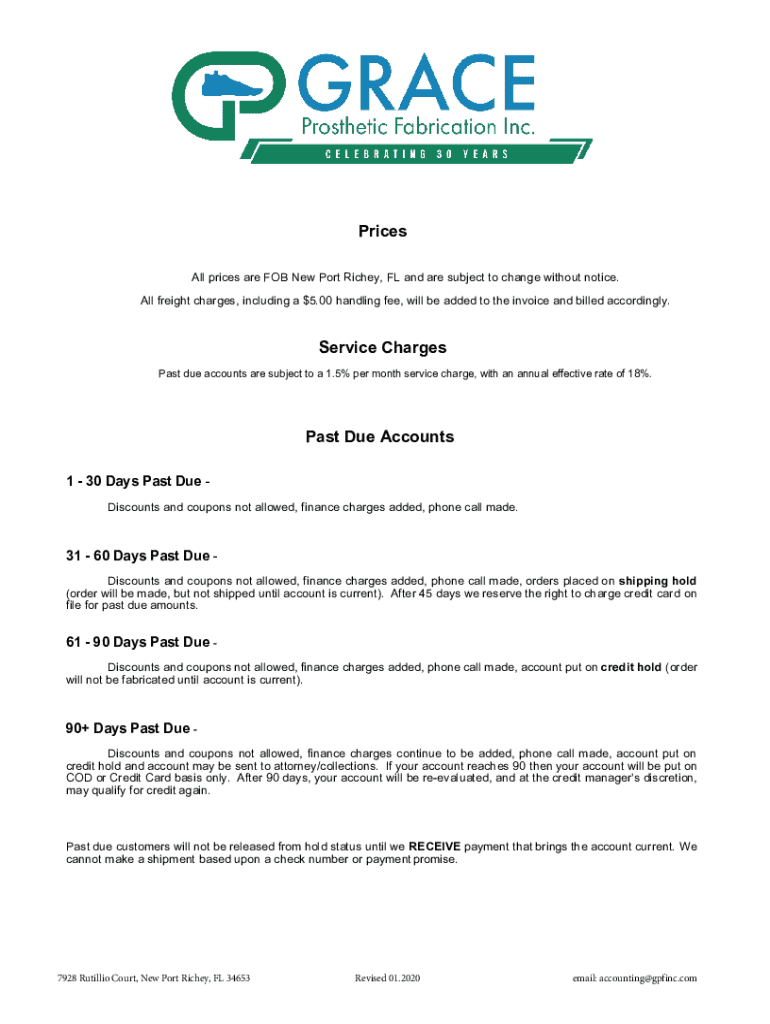 Prices All prices are FOB New Port Richey, FL and are subject to change without notice. All freight charges, including a $5.00 handling fee, will be added to the invoice and billed accordingly.Service
