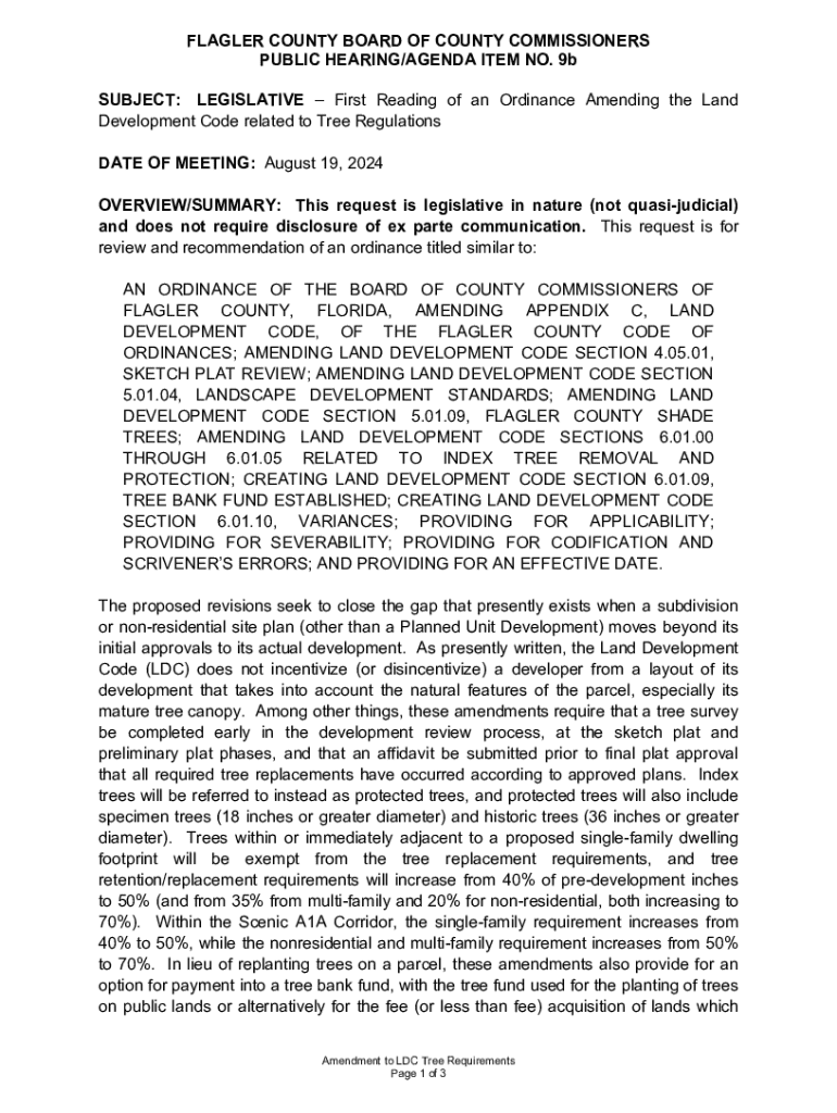 Discover the proposed amendments to Flagler County\'s Land Development Code related to tree regulations. This ordinance aims to enhance tree preservation and development standards.