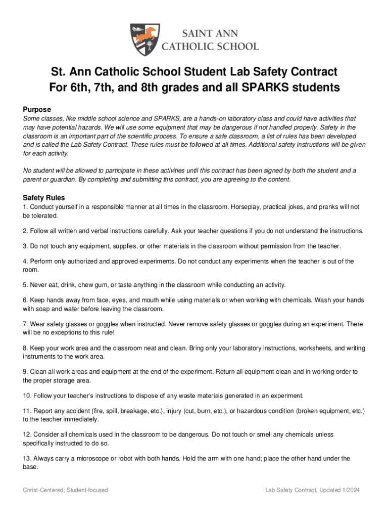 Get the free Ann Catholic School Student Lab Safety Contract