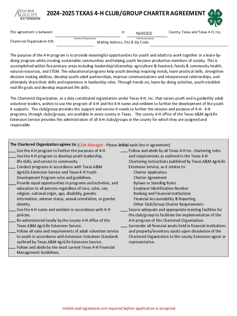 20242025 TEXAS 4H CLUB/GROUP CHARTER AGREEMENT