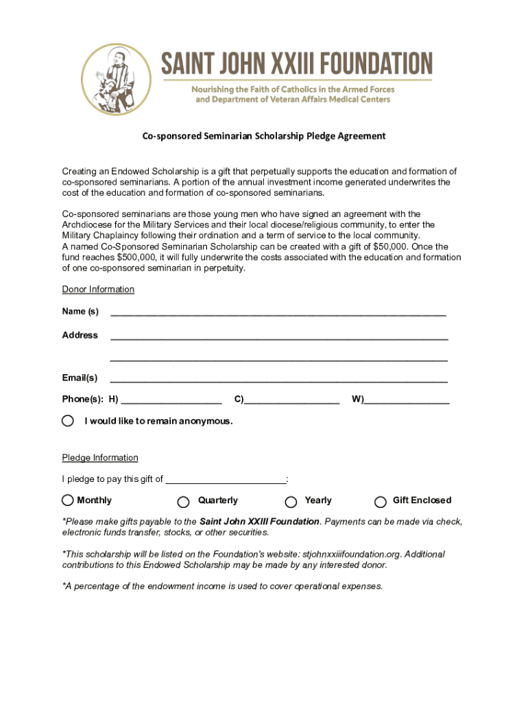 Get the free Co-sponsored Seminarian Scholarship Pledge Agreement