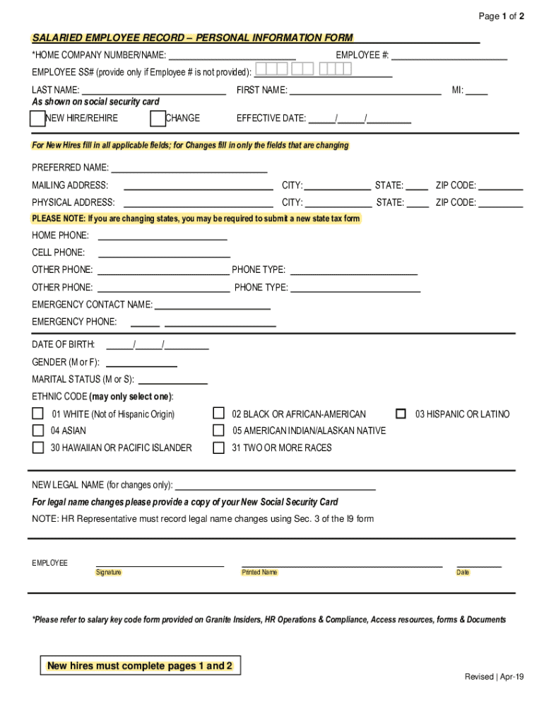 Edit your salaried employee recordpersonal information form online