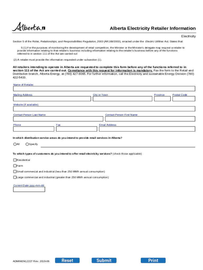 How to fill out alberta electricity retailer information