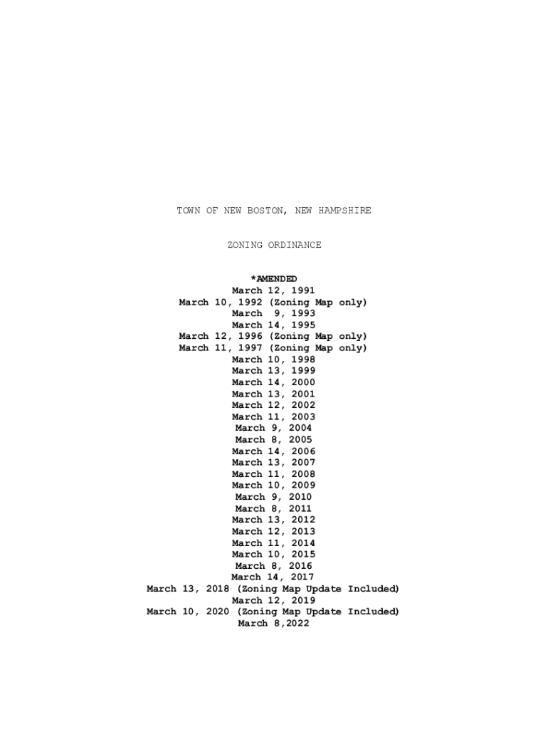 TOWN OF NEW BOSTON, NEW HAMPSHIRE ZONING ORDINANCE *AMENDED March 12, 1991 March 10, 1992 (Zoning Map only) March 9, 1993 March 14, 1995 March 12, 1996 (Zoning Map only) March 11, 1997 (Zoning Map