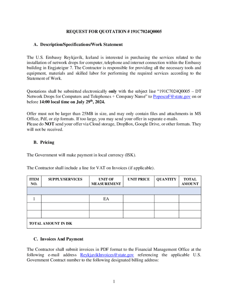 REQUEST FOR QUOTATION # 191C7024Q0005