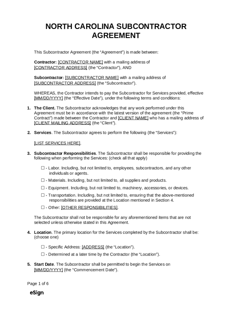 What is North Carolina Subcontractor Agreement Template - es Form?