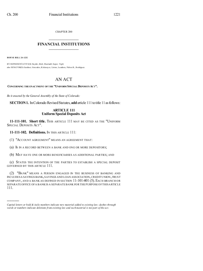 Ch. 200Financial Institutions1221CHAPTER 200___ FINANCIAL INSTITUTIONS ___ HOUSE BILL 241232 BY REPRESENTATIVE(S) Snyder, Bird, Marshall, Super, Vigil; also SENATOR(S) Gardner, Gonzales, Kirkman,