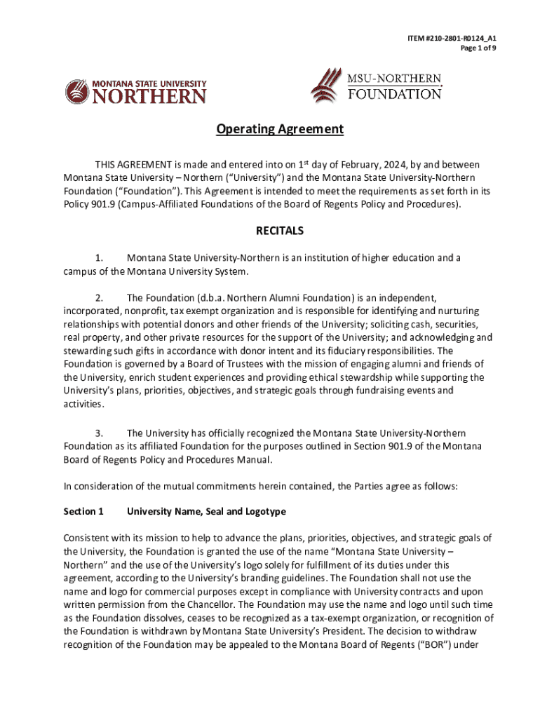 ITEM #2102801R0124_A1 Page 1 of 9Operating Agreement THIS AGREEMENT is made and entered into on 1st day of February, 2024, by and between Montana State University Northern (University) and the Montana