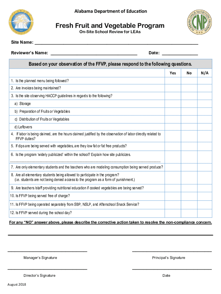 Get the free Fresh Fruit and Vegetable Program Onsite Review Form