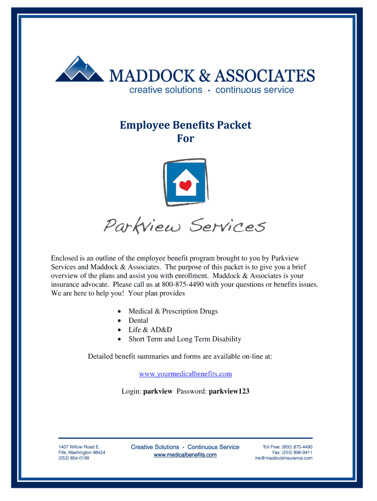 Employee Benefits Packet For Enclosed is an outline of the employee benefit program brought to you by Park view Services and Paddock & Associates. The purpose of this packet is to give you a brief