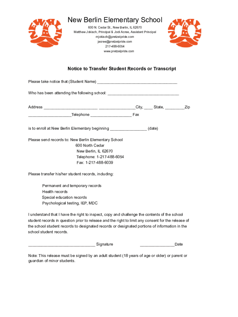 New Berlin Elementary School 600 N. Cedar St., New Berlin, IL 62670 Matthew Jokisch, Principal & Jodi Acree, Assistant Principal mjokisch@pretzelpride.com jacree@pretzelpride.com 2174886054 www.pretzelpride.comNotice