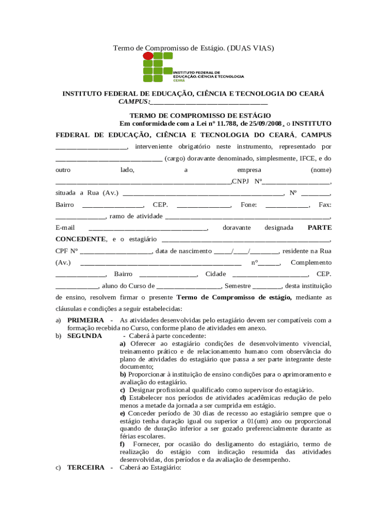 Template termo de compromisso de estgio e o plano de atividades - ifce edu instructions