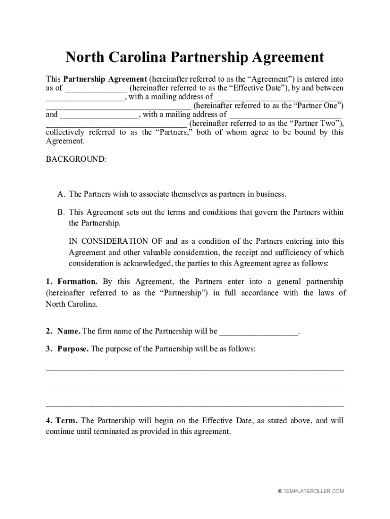 Get the free North Carolina Partnership Agreement Template. TemplateRoller.com