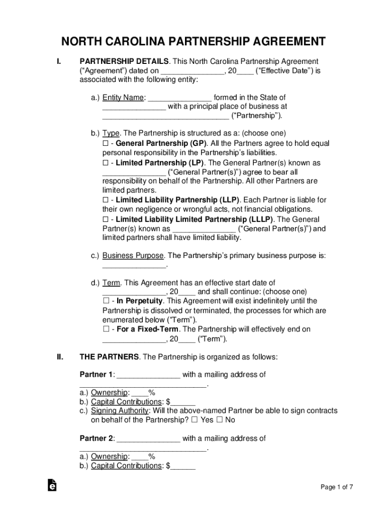Get the free North Carolina Partnership Agreement Template. eForms.com