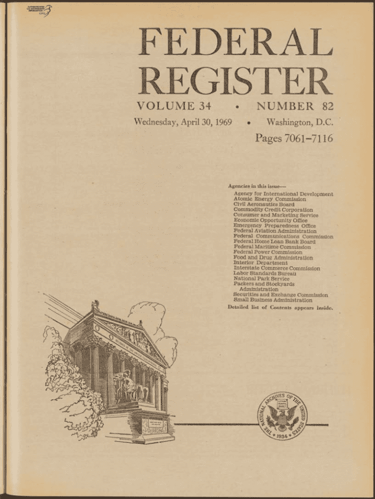 FEDERAL REGISTER V O L U M E 34.Wednesday, April 30, 1969NUMBER 82Washington, D.C. Pages 70617116Agencies in this insurgency for International Development Atomic Energy Commission Civil Aeronautics