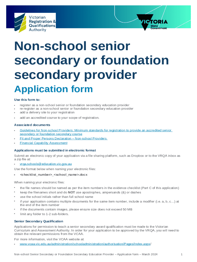 Instructions for the Non-school Senior Secondary or Foundation Secondary Provider Application form