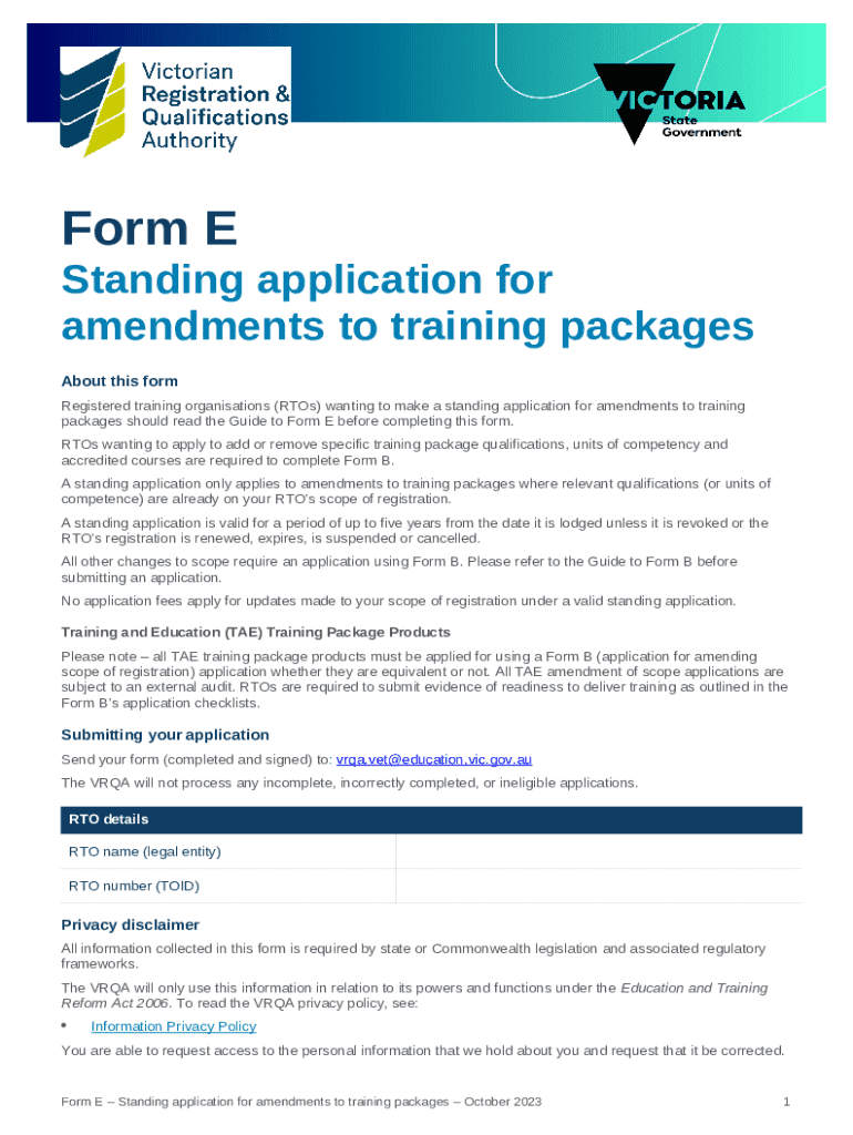 Instructions for the form E
