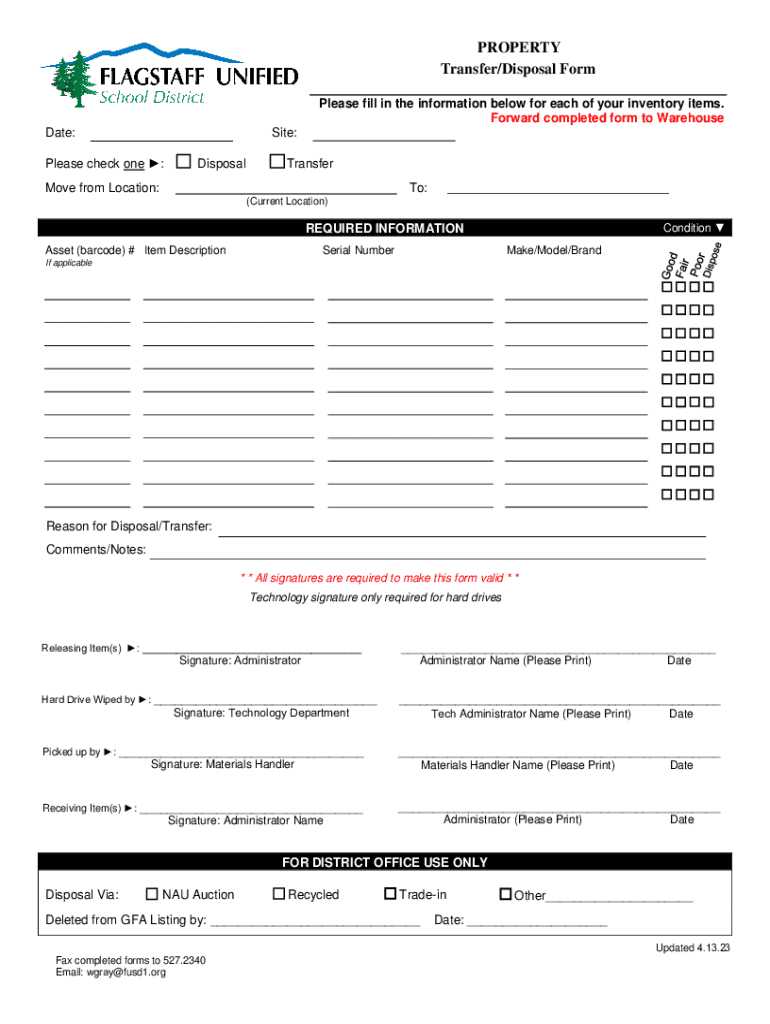 Get the free Fixed Asset Property Action Form Disposition: Transfer: