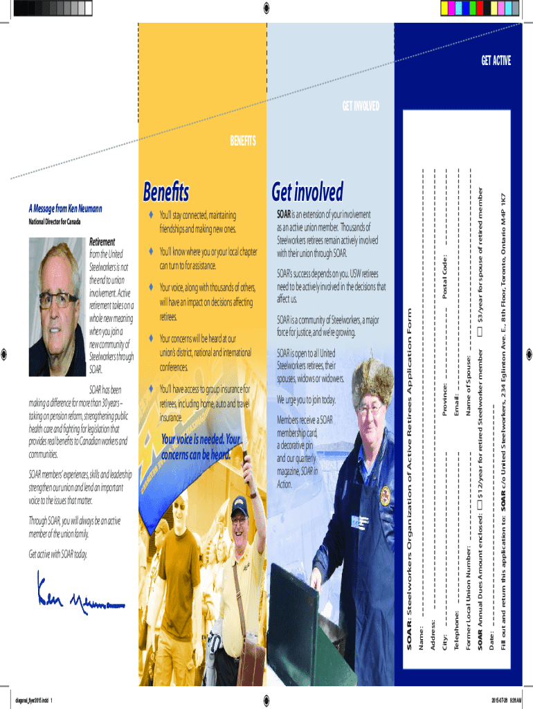 GET ACTIVE GET INVOLVEDdiagonal_flyer2015.indd 1Date: $3/year for spouse of retired member SOAR Annual Dues Amount enclosed: $12/year for retired Steelworker memberPostal Code:Name of Spouse:Members