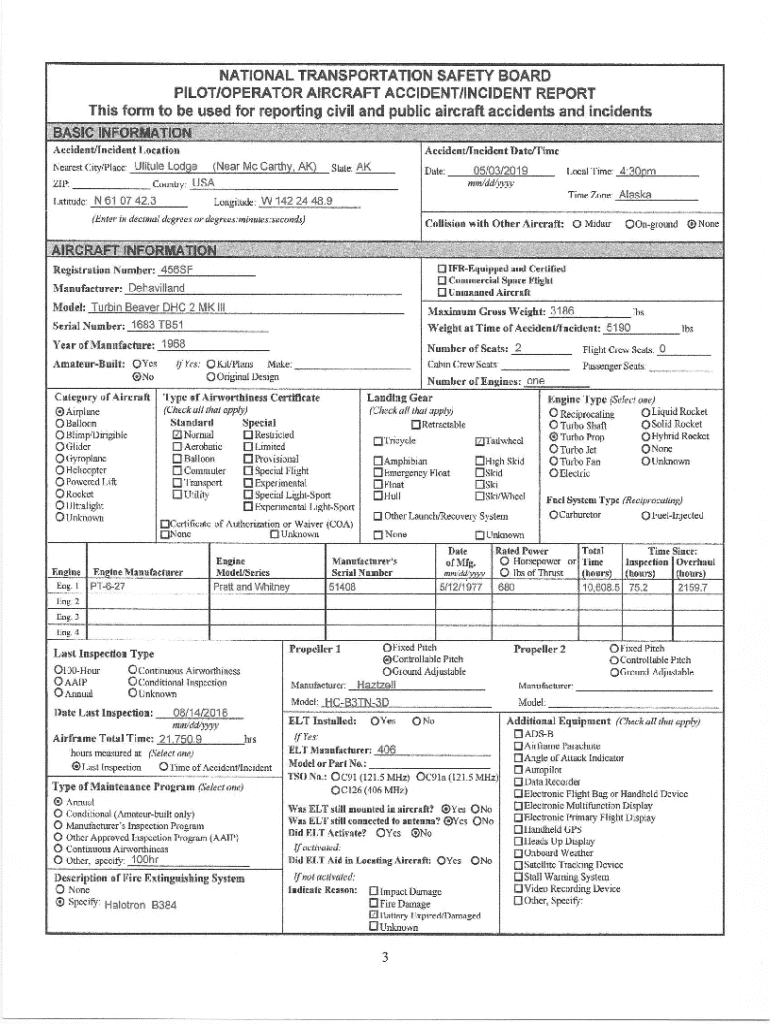 Pilots and operators involved in aircraft accidents or incidents are required to fill out NTSB Form 6120.1 Pilot/Operator.