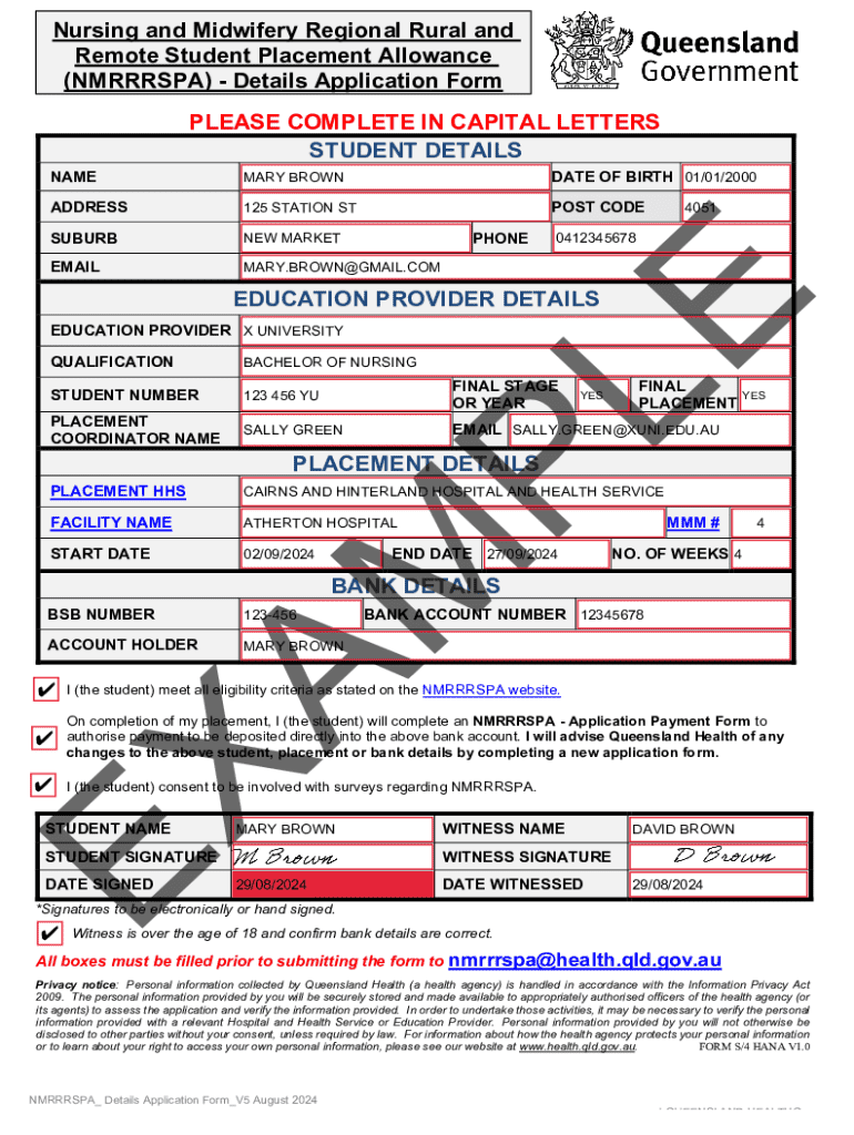 Complete the NMRRRSPA application for Nursing and Midwifery students. Ensure all details are accurate for eligibility and placement processing.