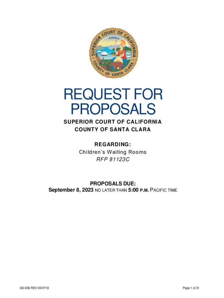 This RFP invites proposals for providing child-care services in the Children\'s Waiting Room at the Family Justice Center, Santa Clara County, from November 2023 to October 2024.