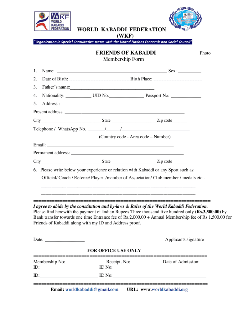 Fill out your world kabaddi federationform world online with pdfFiller!