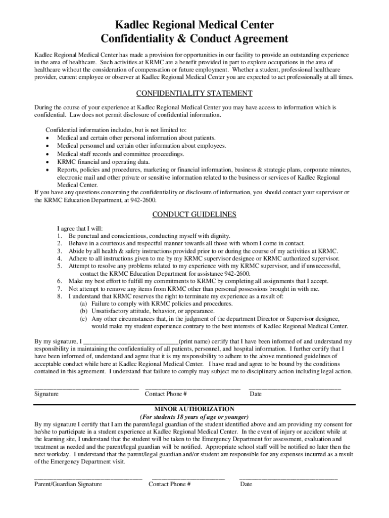 Get the free Kadlec Regional Medical Center Confidentiality & Conduct Agreement