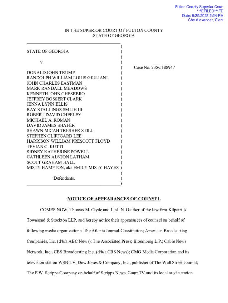 Fulton County Superior Court ***FILED***FD Date: 8/29/2023 2:24 PM Che Alexander, Clerking THE SUPERIOR COURT OF FULTON COUNTY STATE OF GEORGIA ___) STATE OF GEORGIA) ) v.) ) Case No. 23SC188947 DONALD