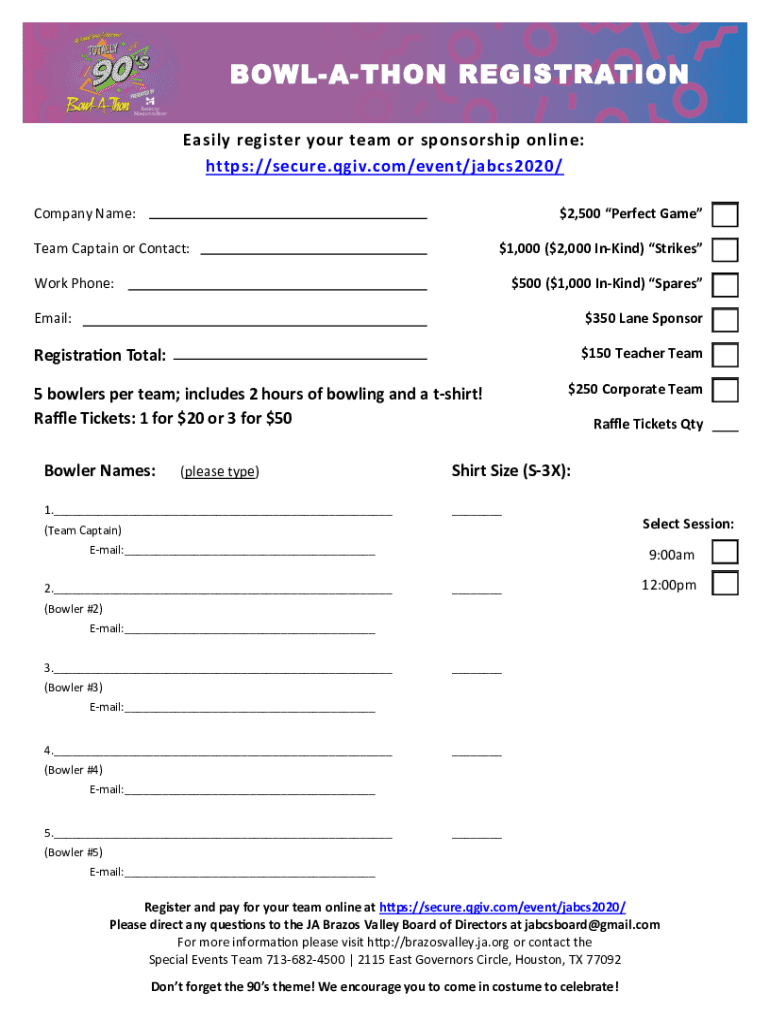 Junior Achievement Bowl-A-Thon Registration is not the form you're looking for?Search for another form here.