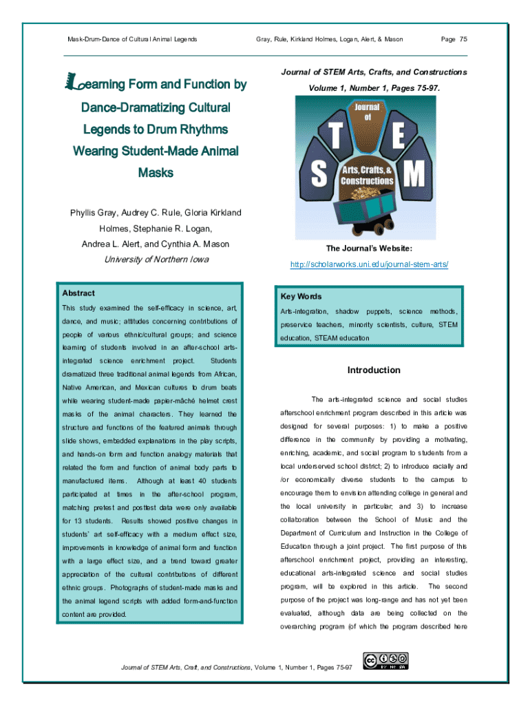 MaskDrumDance of Cultural Animal LegendsGray, Rule, Kirkland Holmes, Logan, Alert, & MasonPage 75___Learning Form and Function byJournal of STEM Arts, Crafts, and Constructions Volume 1, Number 1,