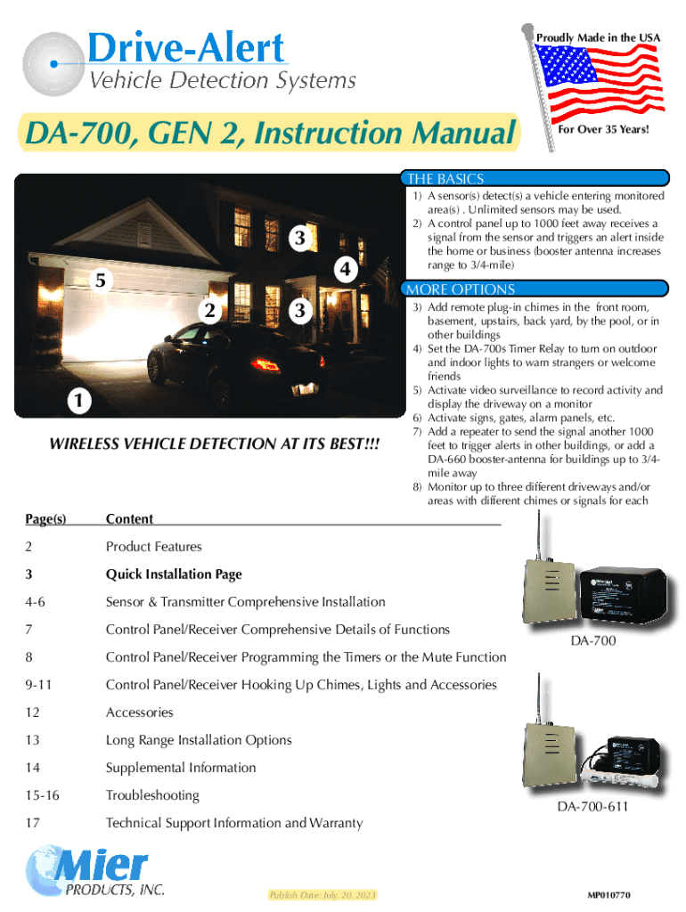 Discover the DA-700 GEN 2 Wireless Vehicle Detection System. Learn installation, features and accessories to enhance security for your driveways.