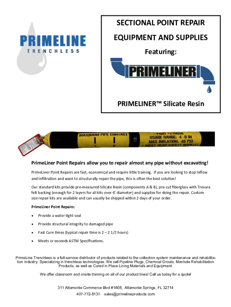 Featuring:PRICELINE Silicate ResinPrimeLiner Point Repairs allow you to repair almost any pipe without excavating!