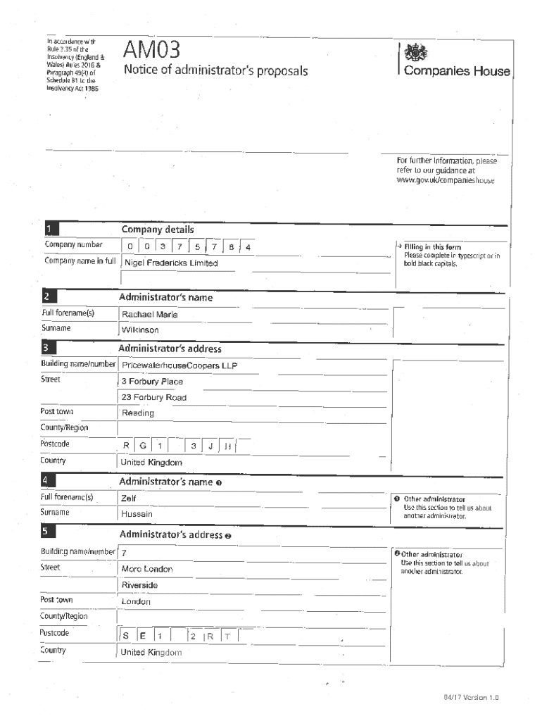 Get the free Notice of administrator's proposaIs Companies House
