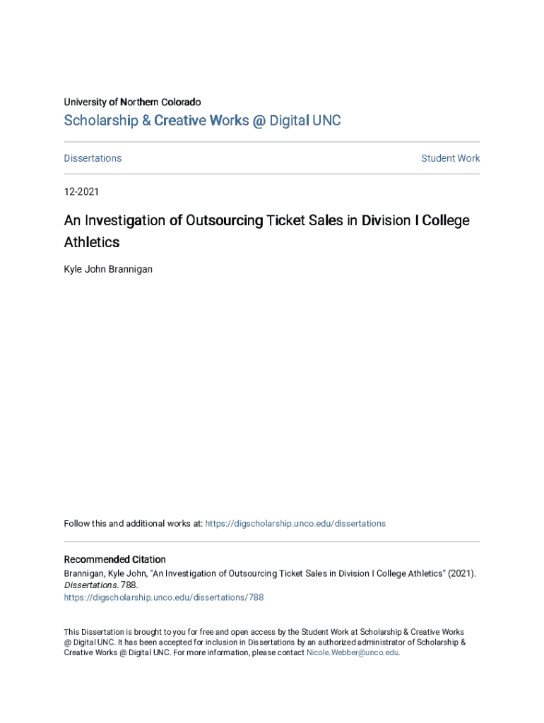 Get the free An Investigation of Outsourcing Ticket Sales in Division I College ... - digscholars...