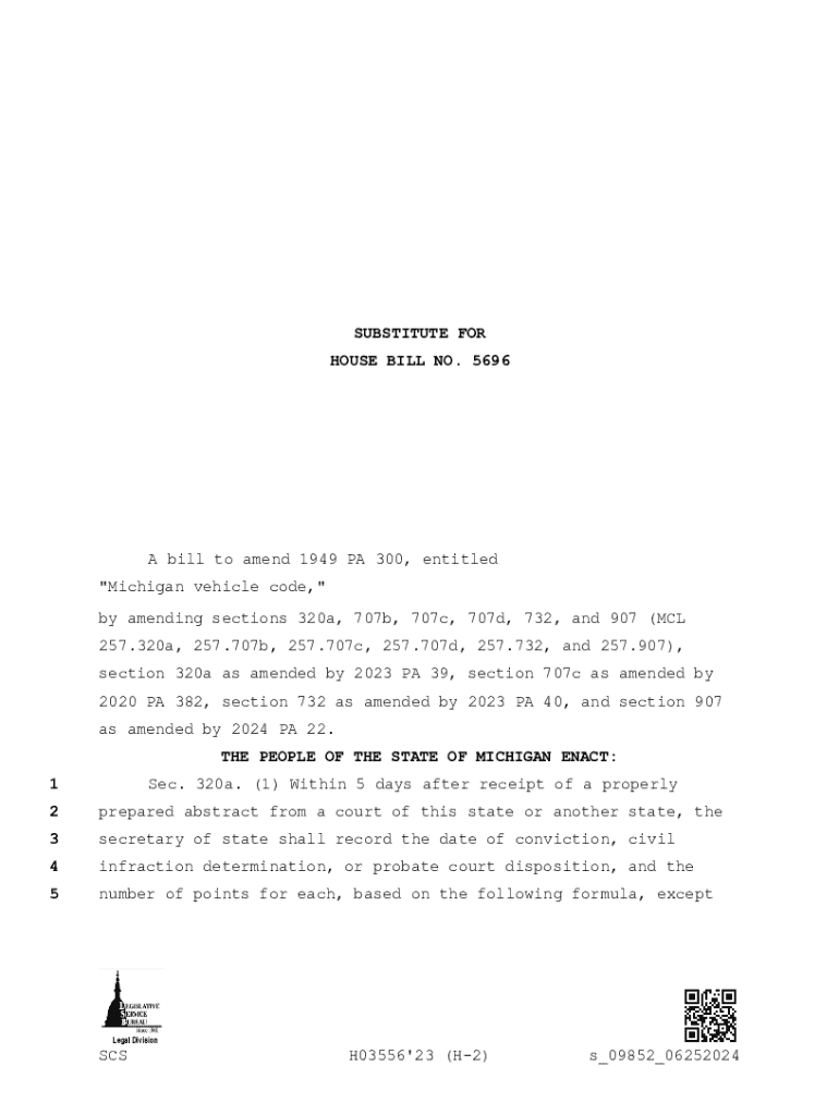 SUBSTITUTE FOR HOUSE BILL NO. 5696A bill to amend 1949 PA 300, entitled \”Michigan vehicle code, \” by amending sections 320a, 707b, 707c, 707d, 732, and 907 (MCL 257.320a, 257.707b, 257.707c,