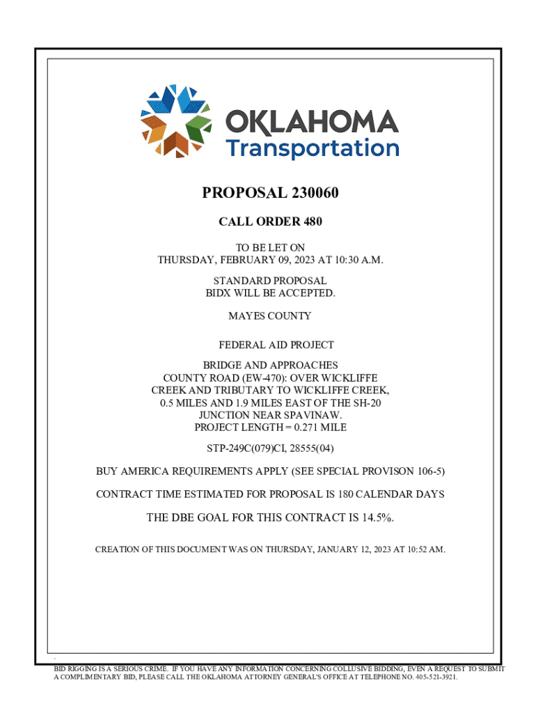 Get the free Proposal Book 230060. Proposal book for letting proposal 230060