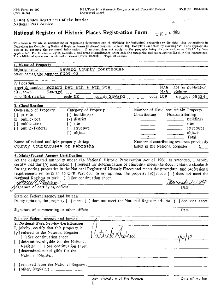 NFS/Four Mile Research Company Word Processor Format (Approved 1/89)NFS Form 10900 (Rev. 886)OMB No. 10240018United States Department of the Interior National Park ServiceNational Register of Historic