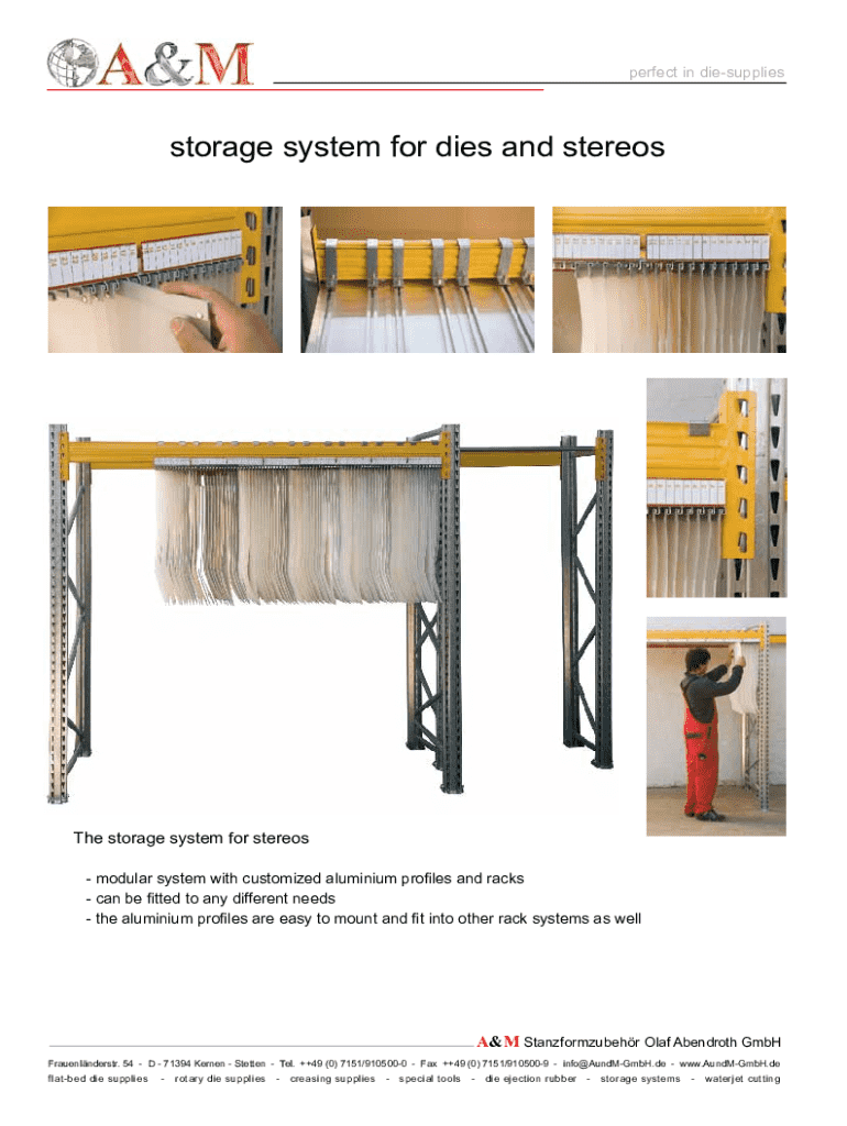 Perfect in diesuppliesstorage system for dies and stereotype storage system for stereos
