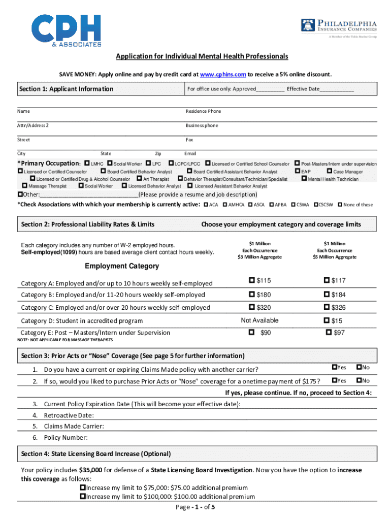 Complete the application for liability insurance for mental health professionals. Ensure accurate information to secure coverage and discounts.
