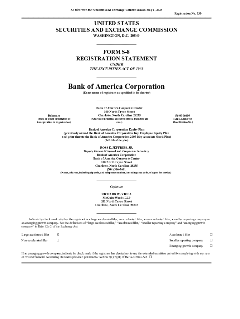 This document registers 75 million shares of Bank of America common stock under the Equity Plan, offering investors a stake in the corporation.