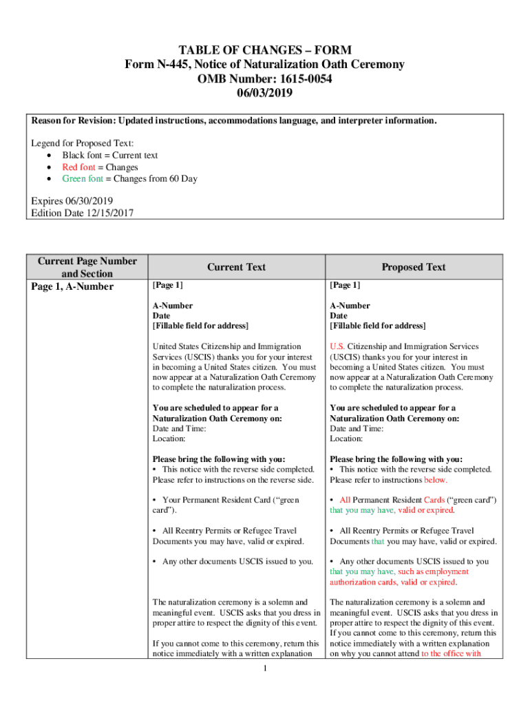 Individuals who have been scheduled for a naturalization oath ceremony after their naturalization application has been approved are required to file Form N-445.