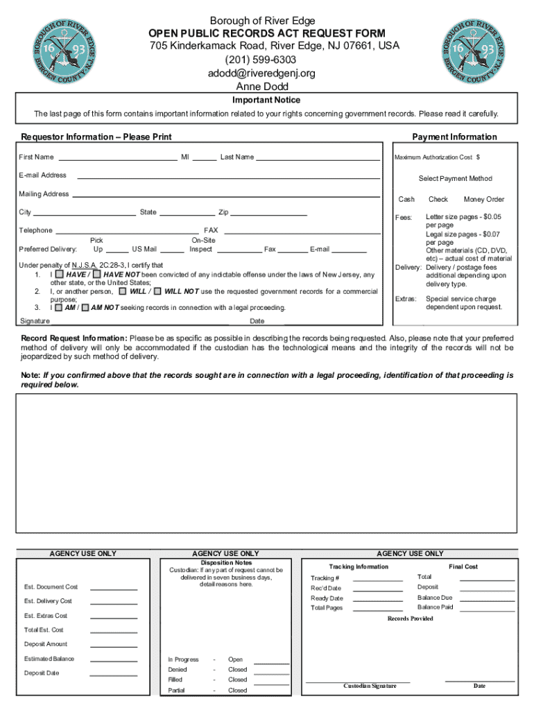 Get the free Borough of River Edge OPEN PUBLIC RECORDS ACT ...